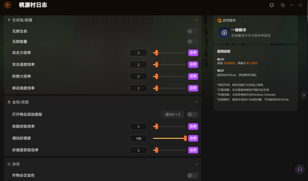 桃源村日志修改 器有哪些 支持设置攻击力+防御力倍率