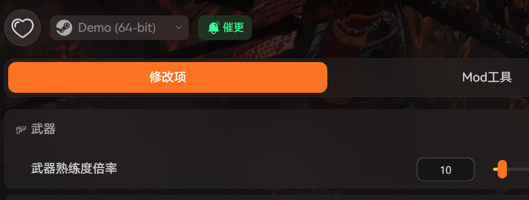 设置武器熟练度功能能帮助玩家快速上手各类武器,仁王3demo里有多种武器可供选择,每种武器的手感和技能都不同,需要提升熟练度才能解锁核心技能。但默认情况下,武器熟练度的提升需要反复使用对应武器战斗,耗时又耗力,尤其是新手玩家,刚上手不熟悉武器操作,熟练度提升很慢,无法解锁关键技能,战斗难度大大增加。通过XMOD可以自由调整武器熟练度倍率,快速提升心仪武器的熟练度,解锁核心技能,根据不同的战斗场景选择合适的武器,应对强敌更轻松。