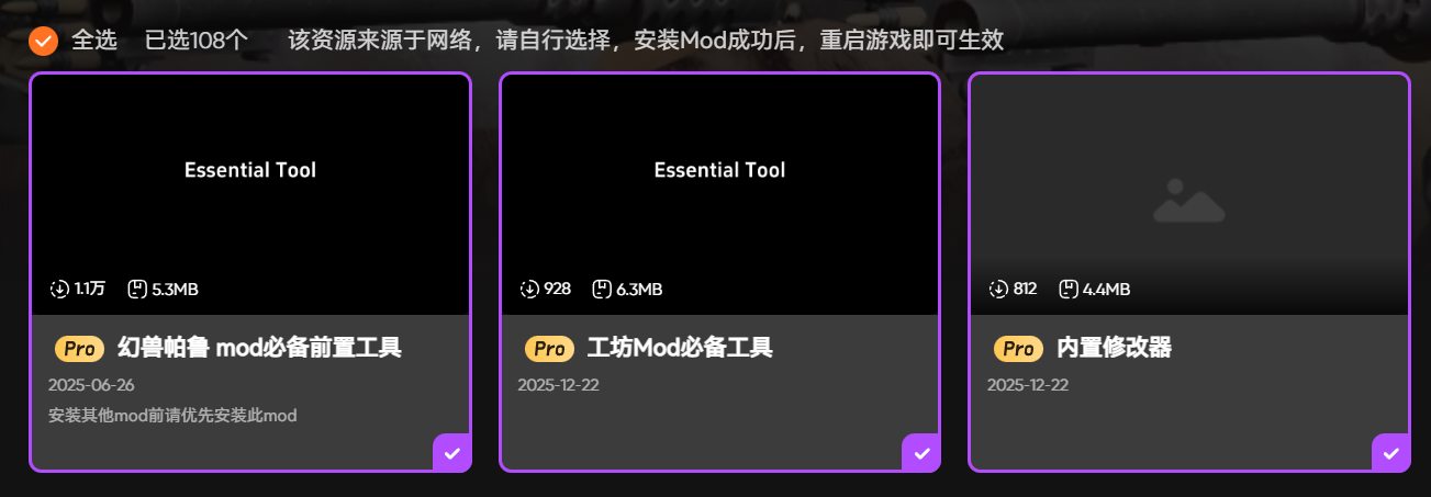 热门mod一键安装功能同样表现出色,像移除飞行耐力、复活时间为0这些热门mod,通过XMOD都能轻松安装,不用自己研究复杂的安装教程。而且每个mod都有简单的介绍,能快速了解功能作用,避免安装到不适配的mod。除此之外,它还有食物不会腐败、无限饱腹度等生存相关的功能,能进一步优化生存体验,让我们更专注于游戏的核心乐趣。