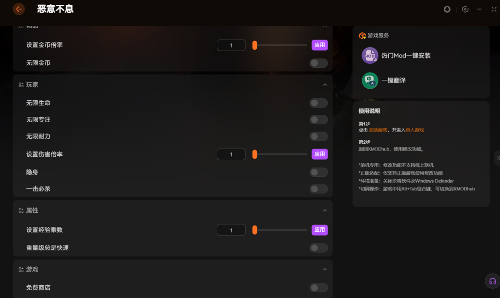 如果你在恶意不息中卡关或觉得成长太慢,可以试试这个工具。它能帮你自定义游戏难度,获得更舒心的游玩过程。