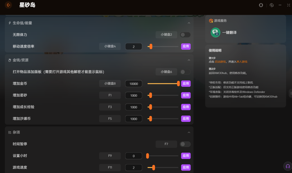 星砂岛正式上线,玩游戏总被体力和时间困住的,直接看这款XMOD修改器。专门适配星砂岛,核心功能实用,还能搭配mod使用,不用复杂操作。
