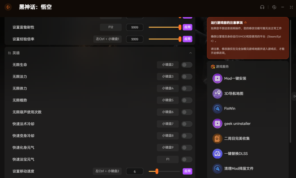 黑神话悟空修改器推荐 支持设置耐性+经验倍率