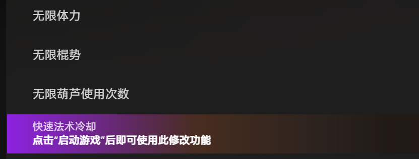 这款修改器的设置非常灵活,不仅可以开启快速冷却,还能自由调整冷却时间的倍率,根据自己的需求设置,既可以稍微缩短冷却时间,保留一定的战斗难度,也可以设置为无冷却,轻松应对各种战斗场景。而且这个功能适配当前黑神话悟空的打折版本,不会出现卡顿、闪退的情况,使用起来非常稳定。除此之外,XMOD还有很多其他实用功能,比如无限法力、无限棍势、设置气力恢复等,涵盖了战斗中的多个需求,搭配快速冷却功能,能让战斗体验更上一层楼。对于喜欢使用法术和变身技能的玩家来说,这两个功能绝对是刚需。