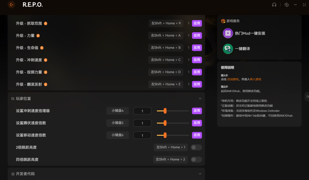 以上就是repo修改 器来了 支持设置移动速度+跳跃高度的全部内容。