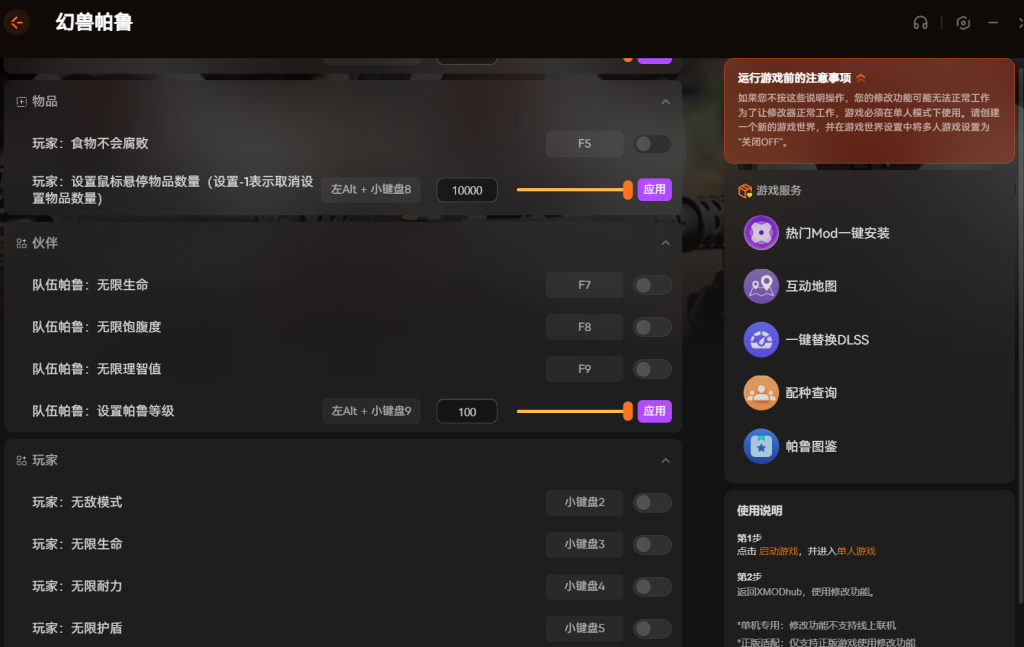 以上就是幻兽帕鲁好用的修改器来了 支持无限体力+无饥饿的全部内容。
