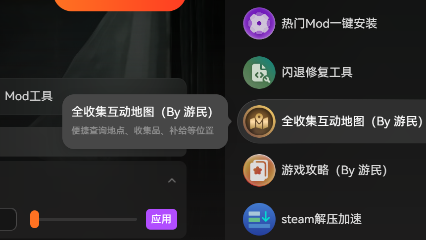 另一个让我觉得实用的就是全收集互动地图。这款游戏的浣熊市地图庞大,隐藏着大量收集品,还有各种解锁道具和剧情线索,很多收集品藏得十分隐蔽,我之前花了大量时间漫无目的地探索,还是错过了不少,导致一些特别内容无法解锁。XMOD的全收集互动地图,会清晰标注出所有收集品的位置,包括隐藏的实验样本、墨带等,还会提示互动方式,跟着地图走,就能轻松集齐所有收集品,不用再反复回溯地图,节省了大量时间。除此之外,XMOD还有很多实用功能,比如帧率画质大师、闪退修复工具等,能适配不同设备,解决游戏卡顿、闪退的问题,提升整体游玩体验。