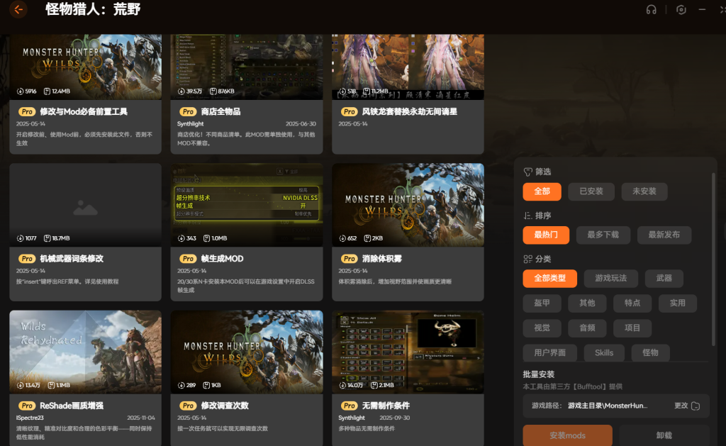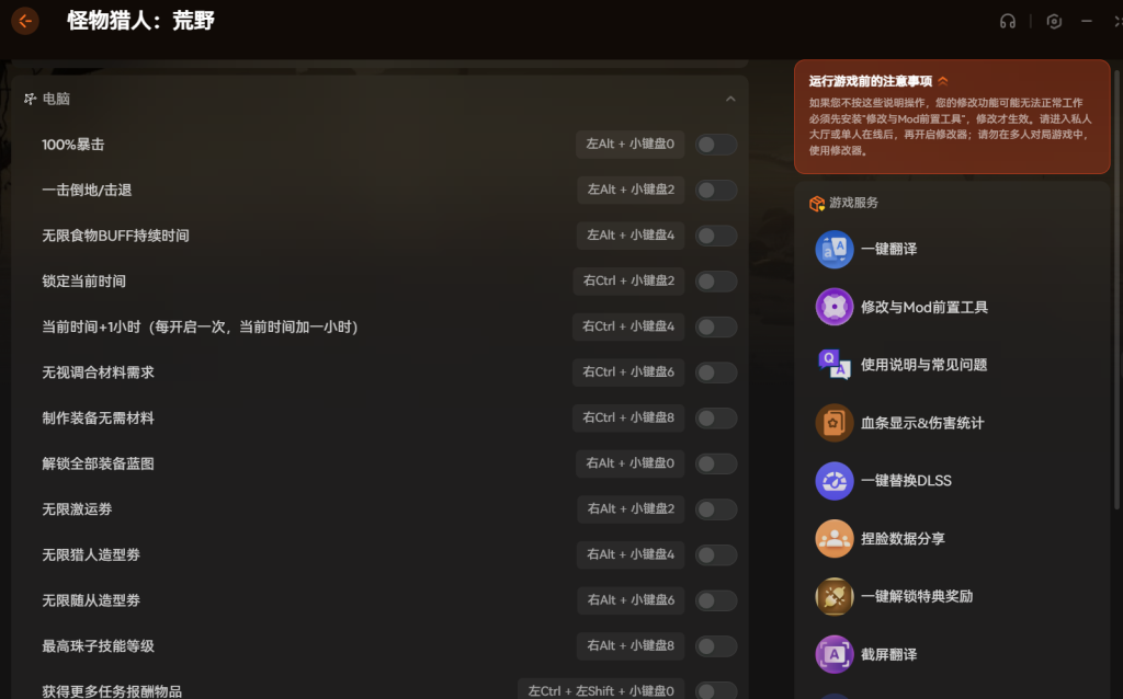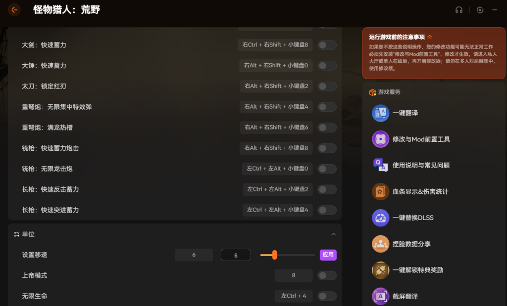 用之前记得先装那个”修改与Mod前置工具”,不然功能不生效 。进游戏最好开私人大厅或者单人模式,别去多人房间用 。游戏更新后有些功能可能要等适配,耐心等等就行。想轻松玩怪猎的可以试试这套工具。