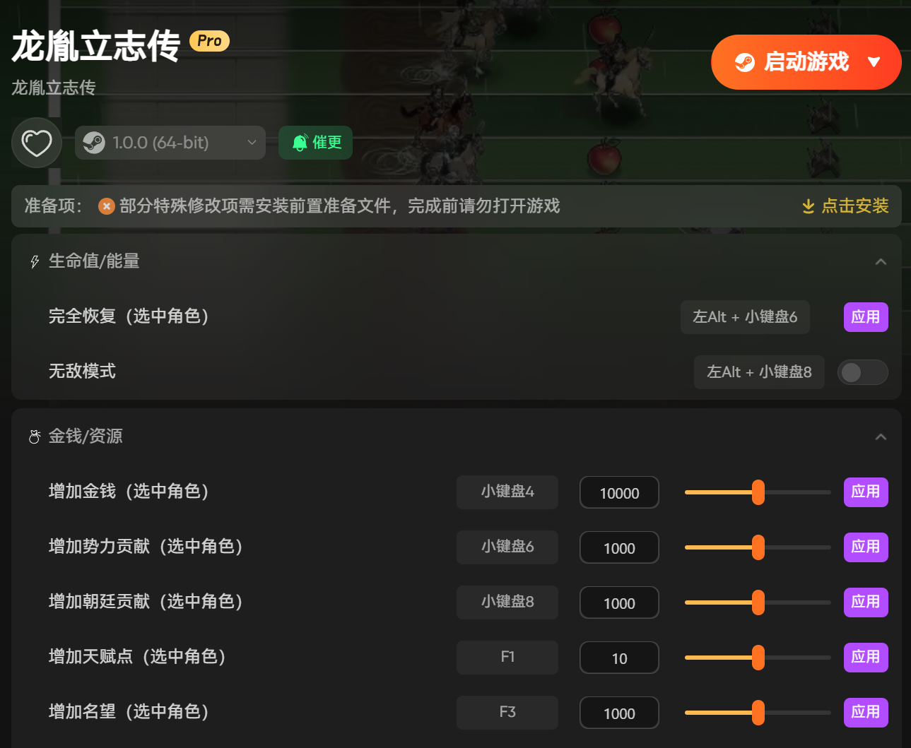 《龙胤立志传》修改器 无敌模式 门派全资源拉满 一键全图探索《龙胤立志传》攻略