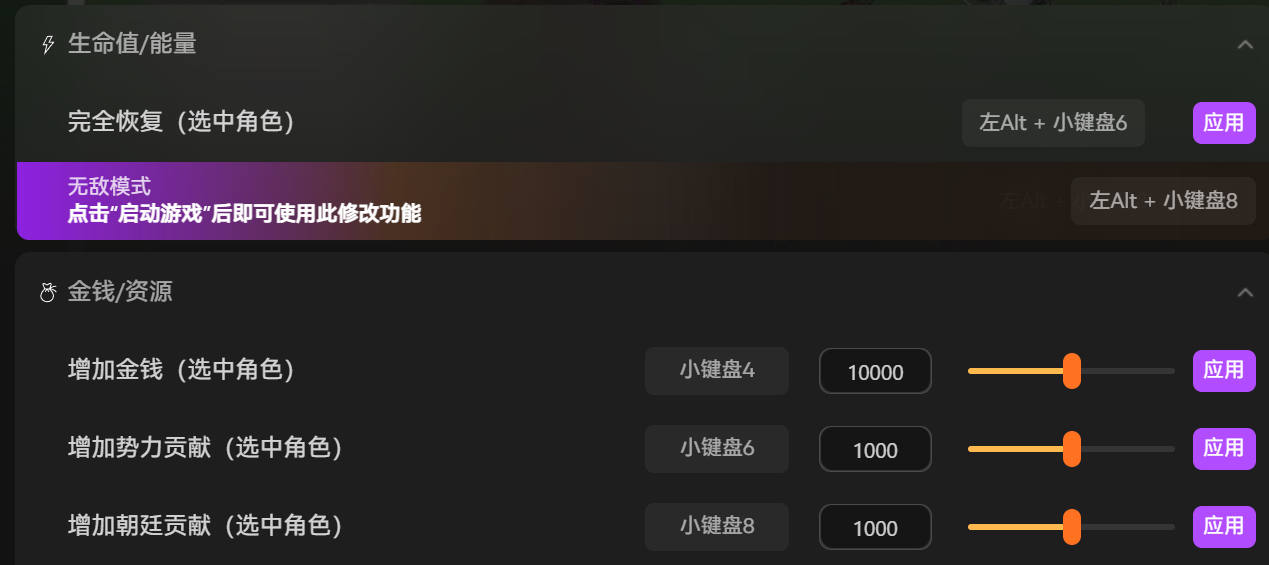 除此之外,XMOD的无敌模式也很实用,适合那些不想反复战败、只想快速推进剧情的玩家。开启无敌模式后,选中的角色可以完全免疫伤害,就算被成群的敌人围攻也不会掉血,不管是野外探索、闯副本,还是门派对战,都能从容应对。而且这款修改器还有很多其他战斗相关的功能,比如增加天赋点、提升角色属性、打开武学面板等,能帮助我们更好地培养角色,优化战斗体验。它的操作很简单,不用复杂的设置,新手也能快速上手,而且适配性很好,不会出现游戏崩溃的情况。