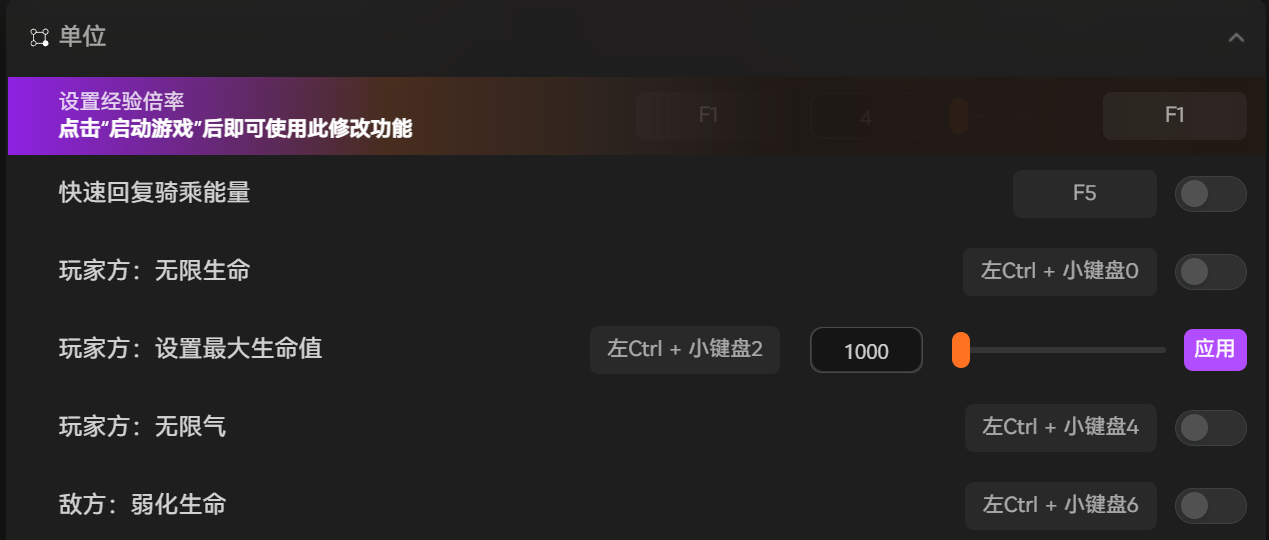 除了经验倍率调整这个核心养成功能,XMOD还针对本作打造了多项配套养成与战斗功能,比如无限铜币、无限银币、无限气、弱化敌方生命等,既能提升养成效率,又能优化战斗体验,形成完整的功能闭环。很多玩家只想要加快养成节奏,不想降低战斗难度,这款修改器可以单独开启经验倍率功能,不影响其他游戏设定,兼顾养成效率与战斗策略性,同时也能搭配其他功能使用,满足个性化需求,功能灵活性极高,适合各类养成玩法爱好者。