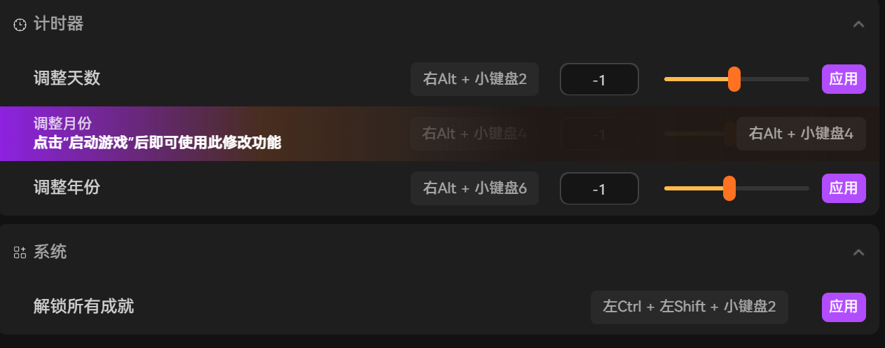 除此之外,XMOD的调整天数功能也很实用,游戏内的很多任务、剧情,都需要等待特定的天数才能触发,有时候为了触发某个剧情,需要等待好几天,特别浪费时间。用了调整天数功能,我可以直接调整游戏内的天数、月份、年份,不用再漫长等待,快速触发想要的剧情和任务,解锁更多的游戏内容。而且这款修改器还有很多其他功能,比如增加门派资源、提升角色等级、打开各种面板等,涵盖了游戏的各个方面,不管是门派经营、角色养成,还是剧情推进,都能找到对应的修改功能。它的操作很简单,不用复杂的设置,就算是新手也能快速上手,适配性也很好,不会影响游戏本身的体验。