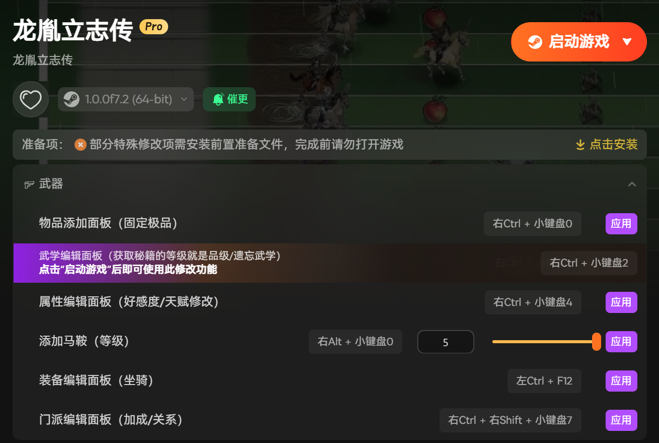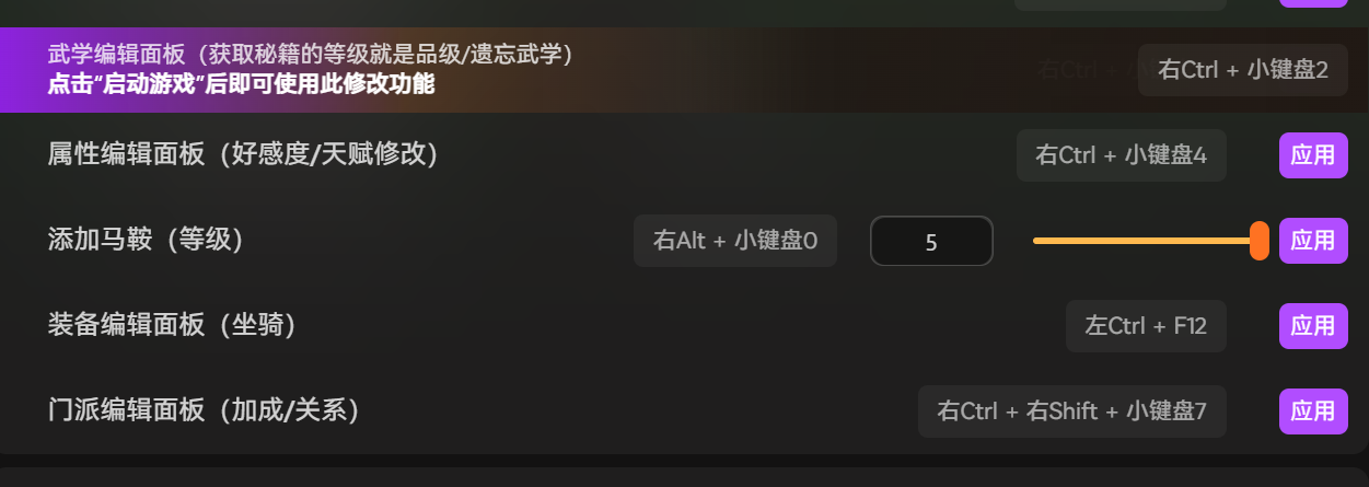 修改器核心聚焦武学养成核心痛点,开启武学编辑面板后,可自由解锁、调整近千种武学功法,不用再耗时刷副本、闯秘境获取武学秘籍,不管是武当纯阳功、少林易筋经,还是唐门暗器、五毒奇功,都能一键收入囊中。