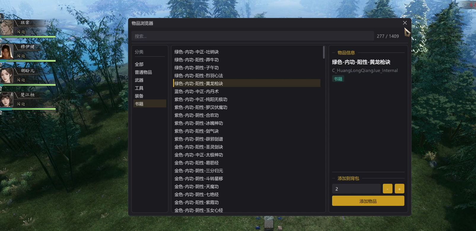 物品浏览器可添加各类游戏物品,绝世秘籍、神兵利器、建设物资一键获取,省去四处探索寻觅的麻烦。