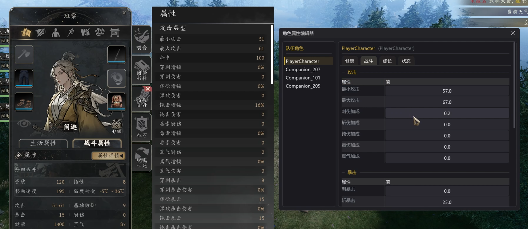 角色编辑器支持精细化定制弟子属性,从体质、悟性到武学天赋,均可自由调整,甚至能提前解锁异兽之体改造权限,让弟子拥有远超常人的战力。
