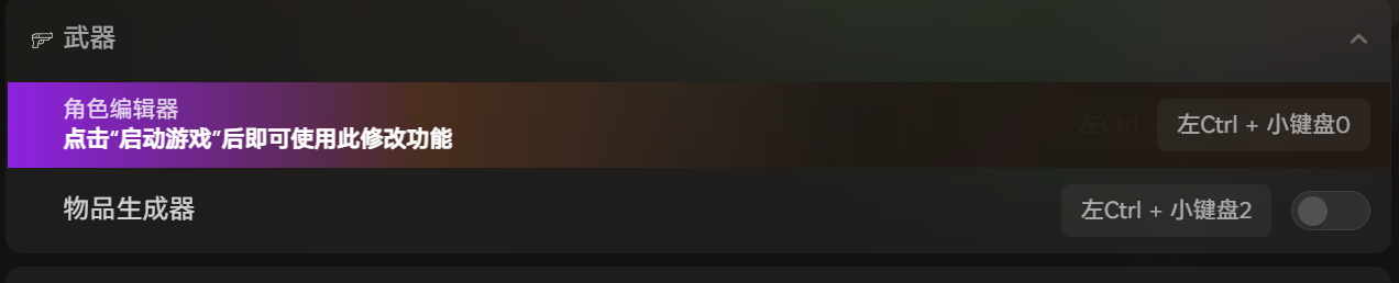 如图所示,这款修改器最吸引人的就是显示角色编辑器和物品浏览器功能。