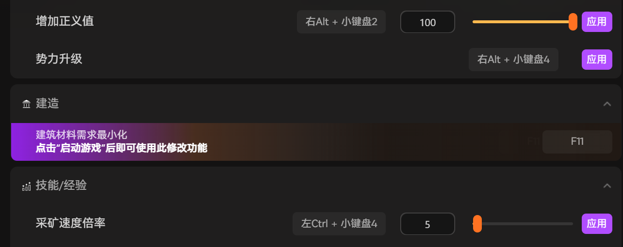 XMOD的【建造材料需求最小化】功能,让我真正实现了“自由建造”的梦想。原本需要大量木石才能建造的建筑,现在只需要很少的量就能完成。这意味着我可以更快速地搭建起门派的雏形,更快地拥有完善的防御工事。我可以根据地形和美学,自由地规划和调整门派布局,而不用再被材料短缺所束缚。