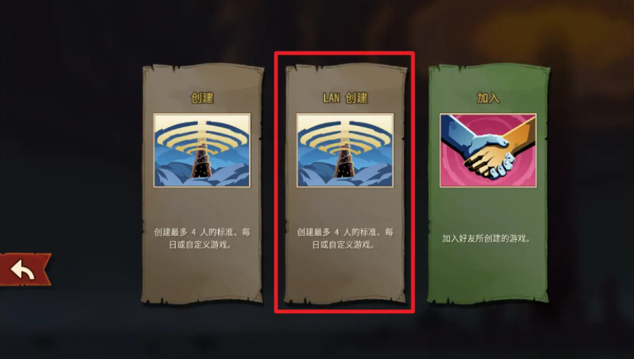 - 房主选择多人游戏,点击【LAN创建】创建房间