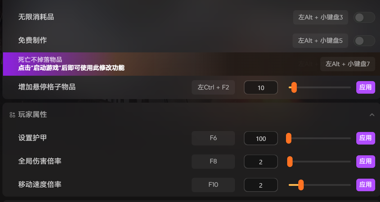 资源是游戏生存与发展的核心关键,单人模式下,玩家需要独自面对资源短缺的困境,反复采集各类材料来保障自身生存与基地发展;即使在联机模式中,与好友分工合作采集资源,其效率也未必能满足快速推进游戏进程的需求。XMOD的打开物品生成面板功能,可直接生成木材、石材、金属等各类基础资源,以及食物、药剂等消耗品,彻底摆脱资源限制,大幅提升游戏效率,让玩家专注于核心玩法。
