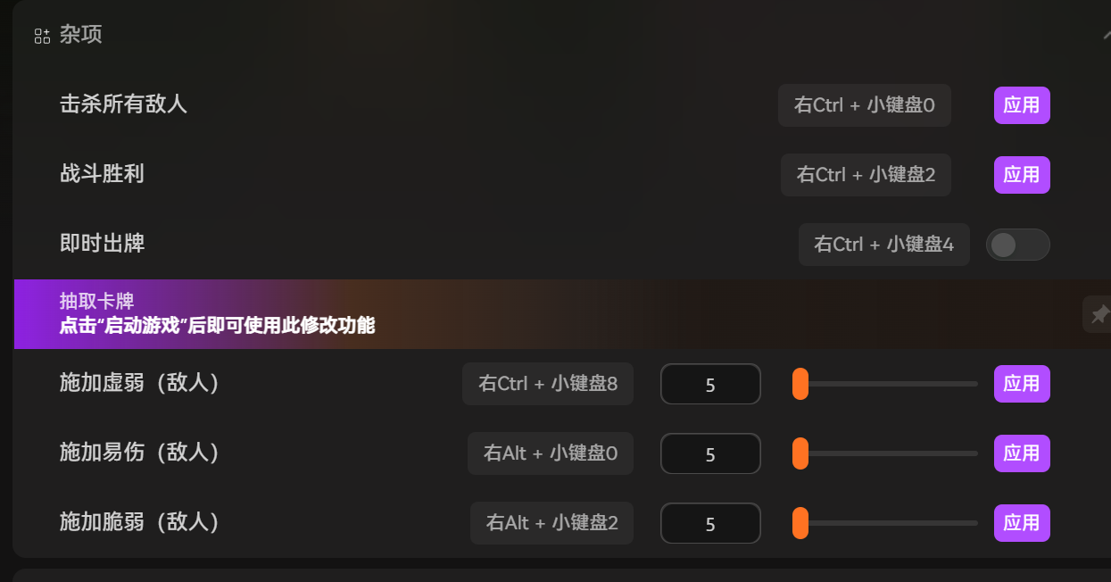 XMOD的抽取卡牌功能可以帮助玩家精准获取想要的卡牌,不管是核心输出卡牌、buff加成卡牌还是防御格挡卡牌,都能按需抽取,快速优化手牌结构,避免关键卡牌沉底的尴尬情况。不管是新手前期过渡,还是老玩家挑战高进阶难度,都能通过这个功能快速成型卡组,打出流畅的卡牌连招,不用再被随机抽牌机制限制,让卡牌策略的施展更加随心,大幅提升战斗的胜率和游玩的流畅度。