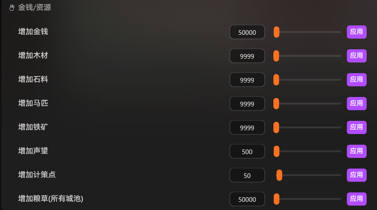 资金是势力发展的基础,城池建设、武将招募、军备打造都需要稳定的经济支撑。游戏前期发展节奏慢,收入有限,想要快速扩张版图很受限制。使用 XMOD 增加金钱的功能,可以合理调节国库储备,平衡发展节奏。优先完善基础民生建筑,稳步提升区域产出,再逐步扩充军队规模,整体游玩节奏会舒适很多,既能体验策略经营的乐趣,又不用被繁琐的资源刷取消耗时间。