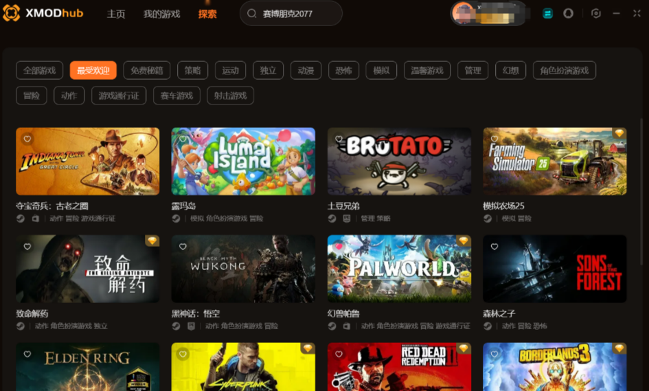 除了赛博朋克2077这款游戏之外,市面上99%的热门游戏XMOD xiu改器都会提供相应的修改支持,如果是比较小众的游戏,大家也可以在XMOD中搜索看看,一般也会提供多样化的修改方案。