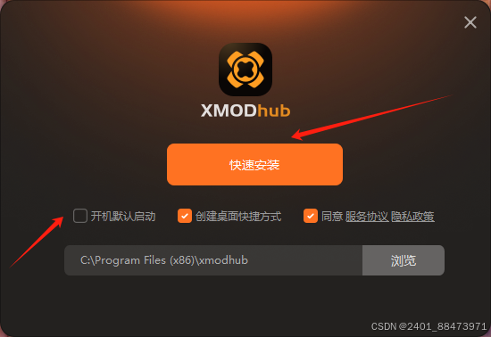 下载完成双击安装包,选择快速安装即可,同时您也可以选择开启默认启动。