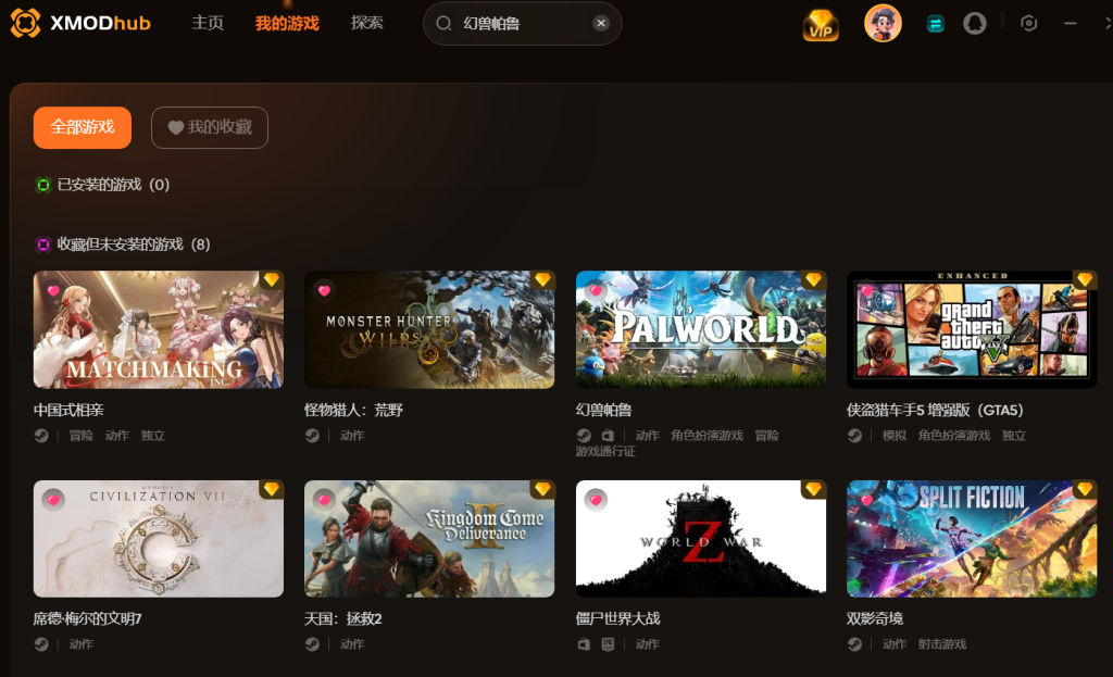 大家可以在XMOD的探索界面选择相应的游戏类型,快速查看你喜爱的游戏类型。或者你也可以直接搜索游戏,快捷地进入到修改页面。