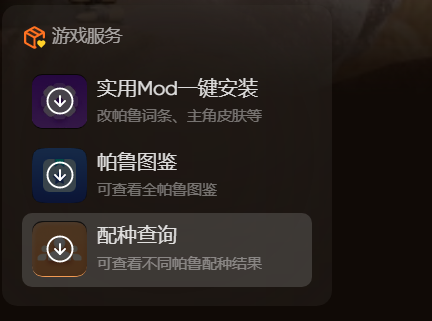 右侧有修改词条,主角皮肤等mod和配种查询工具。