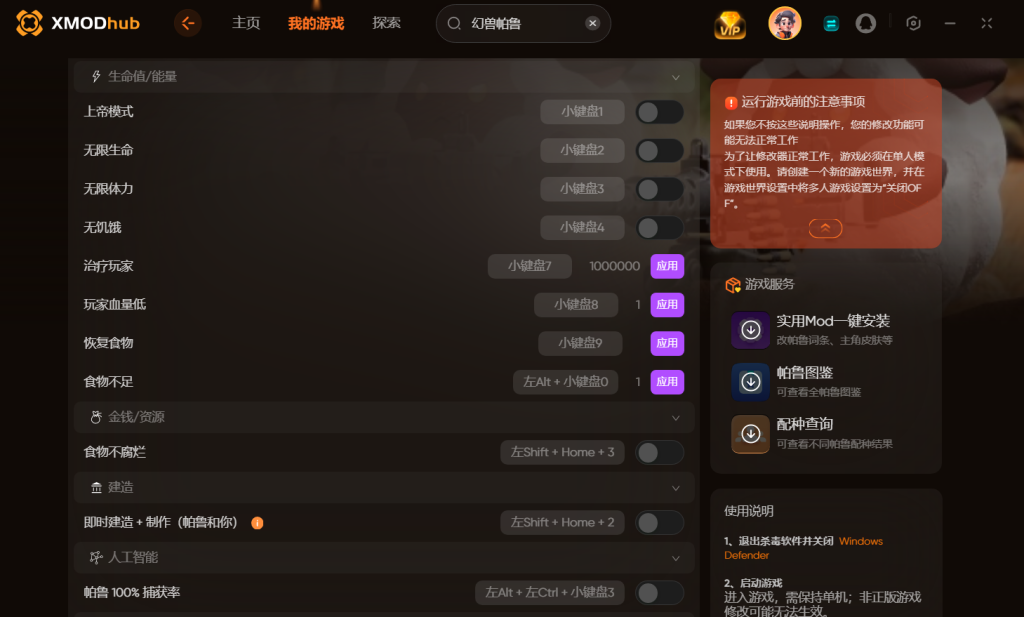 大家可以网络搜索【XMOD修改器】找到官网下载它,查看更多的修改选项。