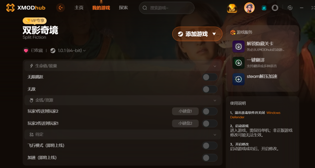 双影奇境是一款双人闯关的游戏,十分考验两个玩家之间的配合能力。在游玩的时候,很多玩家会遇到影响游戏体验感的问题,比如不能一直连跳,遇到难度高的关卡,两人不能同时闯过去等等,这些问题你都可以使用XMOD修改 器解决,XMOD可以对5000多款的游戏提供大量的修改选项,想了解更多的小伙伴可以看看下面介绍的功能全的双影奇境修改 器推荐 双影奇境修改 器最新下载。