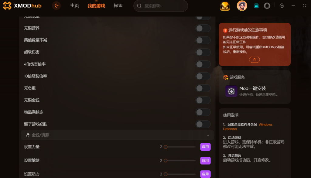 你们可以网络搜索【XMOD修改器】进入官网下载XMOD,了解更多的修改选项。