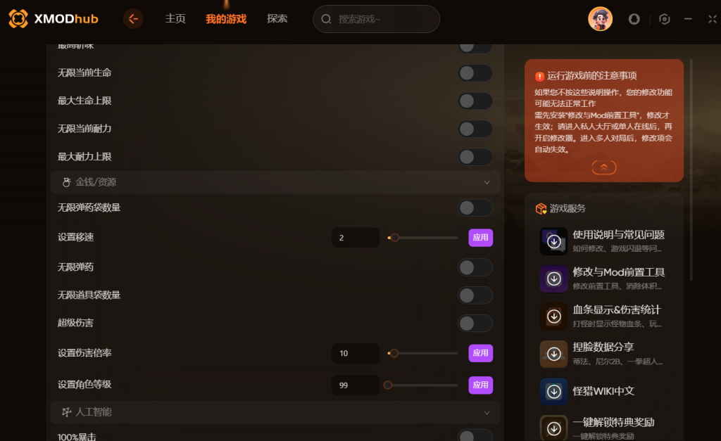 想了解更多的小伙伴,可以打开XMOD查看所有的修改选项。