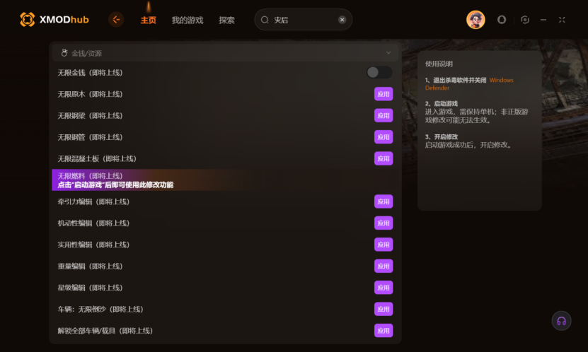 无限燃料功能解决了城市运行中的能源问题。在灾后,燃料的供应往往十分紧张,这会严重影响到城市的交通、工业生产等各个方面。XMOD 修改器的无限燃料功能,确保了各类机械设备和交通工具都能正常运行。解锁所有车辆 / 载具功能,则让你在城市的重建和管理中有了更多的选择,能够更高效地完成各项任务。