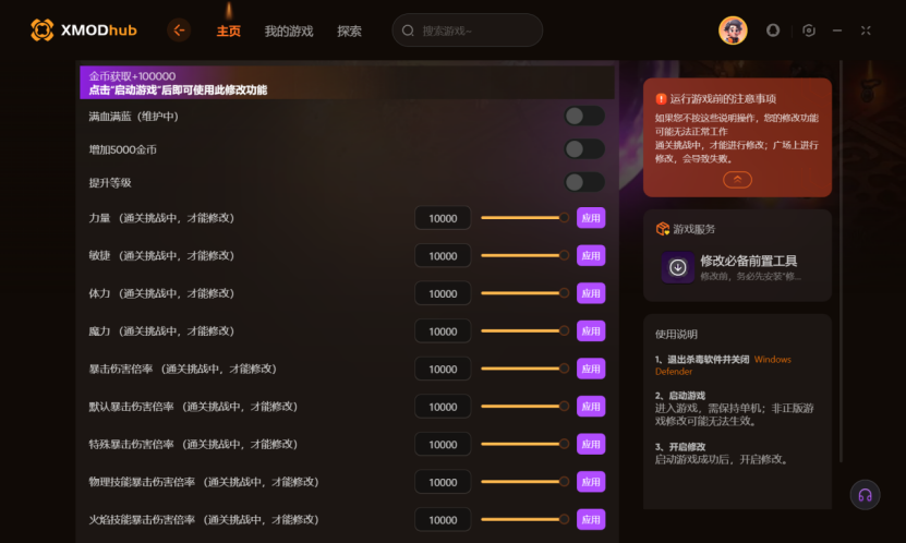 在游戏中,每一场战斗都至关重要。面对如潮水般涌来的怪物,你需要不断释放技能进行攻击和防御。然而,有限的生命值和魔法值常常成为玩家前进的阻碍。有时候明明距离胜利只有一步之遥,却因为血量过低或魔法值不足而功亏一篑。XMOD 修改器的出现,完美解决了这个问题。它能让你始终保持满血满蓝,无论面对多么激烈的战斗,都能毫无顾忌地释放技能,尽情享受战斗的快感。